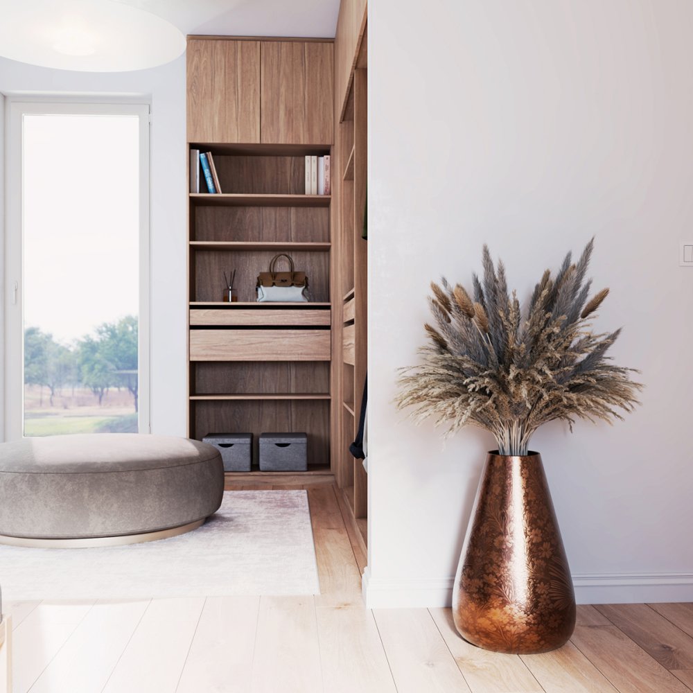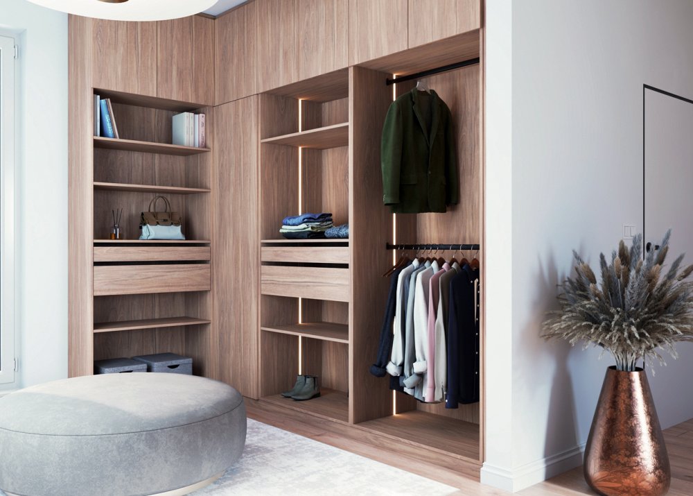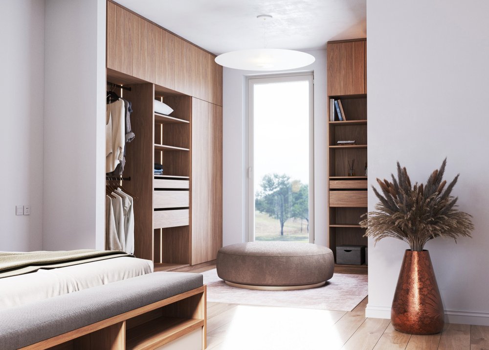 Minimalistický otvorený šatník